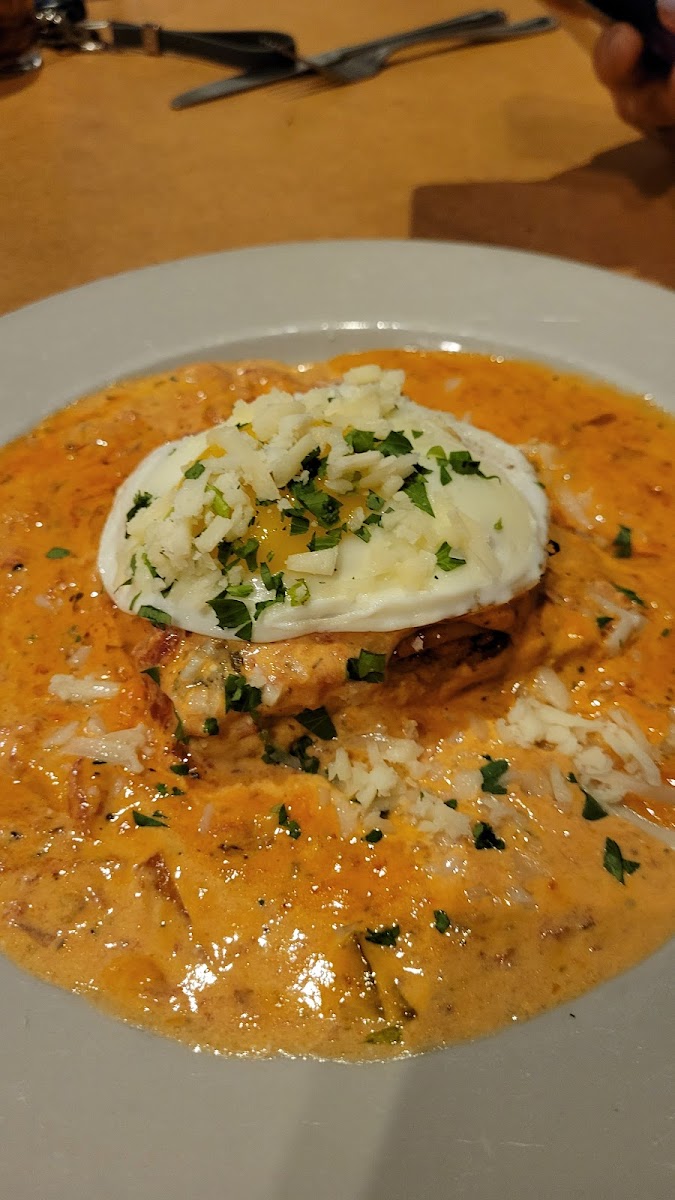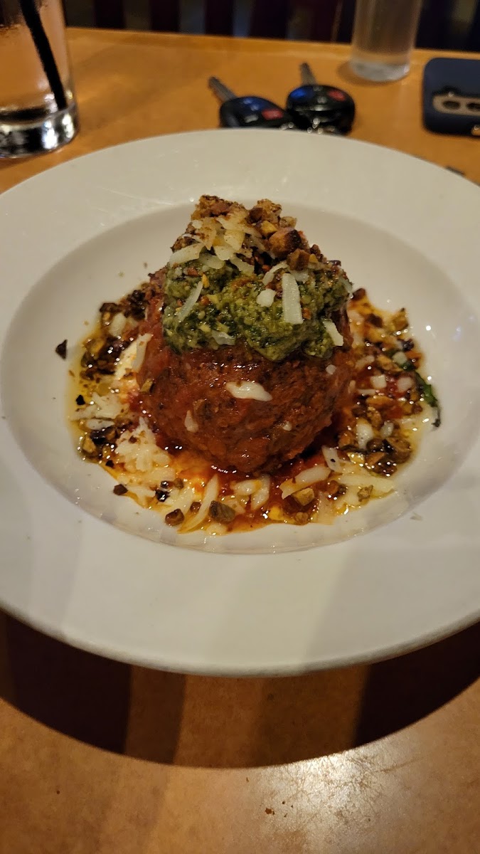 I went here with my 2 buddies. We sat in the dinging room, which was a little romantic for 3 guys in the 40s. We all loved our food. This pizza was incredible. I held off the onions (because they are gross), but the spice on this was I’m going to come back here with my wife where she can get an expresso martini and a fancy dish and I’ll get this again because it was sooo good.
