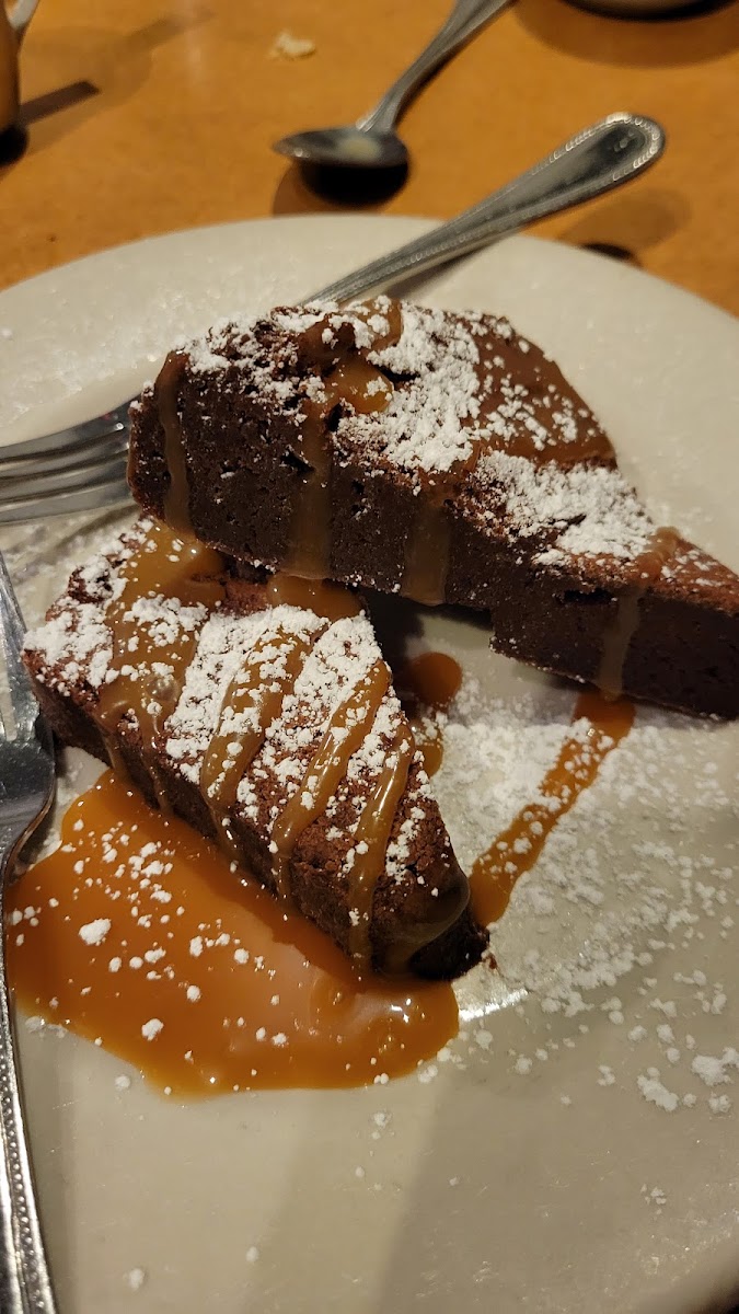 We stopped in for wine and dessert having already had dinner. They happened to have a musician playing so we chose to sit on the patio so we could still have a conversation. The wine was good and the dessert, a flourless chocolate torte, was tasty. We did end up at the bar a little later due to a key incident and ordered wine and a cocktail. I guess she didn’t understand that we wanted the cocktail so she didn’t make it for us. Oh well! It was an eventful evening for sure.